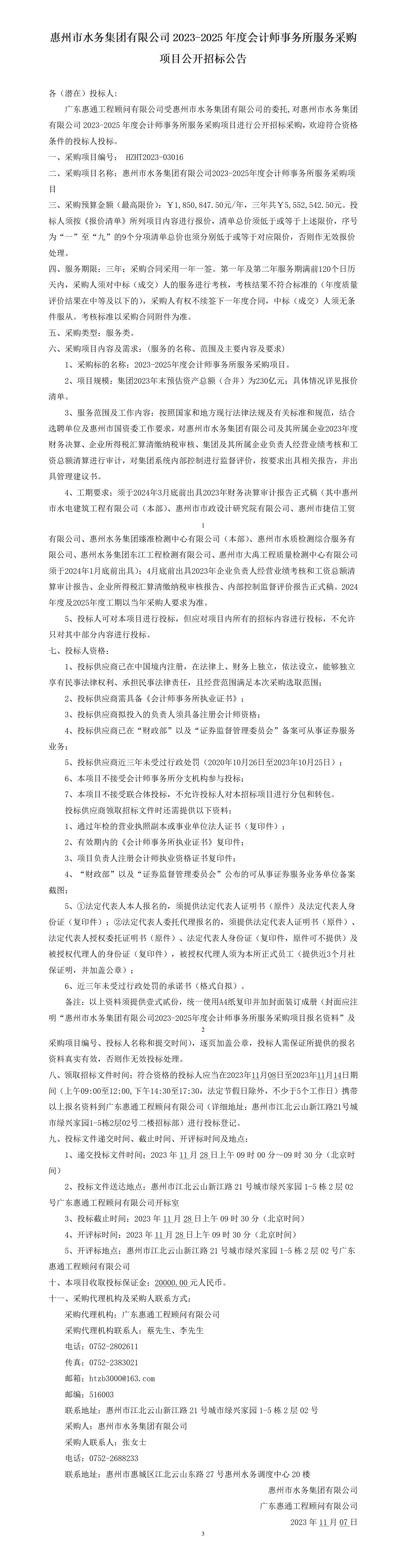 惠州市水務(wù)集團(tuán)有限公司2023-2025年度會計(jì)師事務(wù)所服務(wù)采購項(xiàng)目公開招標(biāo)公告